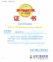 在CIPCA 2009中國IP通信大獎的評選活動中,科大訊飛憑借優(yōu)秀的企業(yè)形象和良好的市場口碑,以明顯優(yōu)勢在第一輪網(wǎng)上投票中脫穎而出;并在第二輪評選中得到了專家評委的一致認可:由140名業(yè)內(nèi)資深高管組成的評委會對科大訊飛給予了極高的評價。最終,科大訊飛以絕對優(yōu)勢,無可爭議的再次問鼎“中國IP通信最佳語音識別技術(shù)提供商(國內(nèi))獎”這一重大獎項。