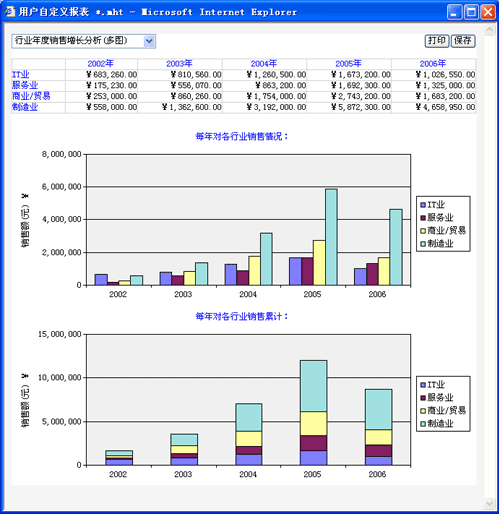 用戶有N個理由,要求CRM客戶關系管理系統輸出的報表(Report)可以嵌入圖表(Chart),就像下圖示例一樣,一方面用數據精確地展現統計分析結果,另一方面用圖形直觀地進行表達。