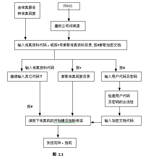 上例中按'4'進(jìn)入傳真服務(wù),下面將詳細(xì)介紹傳真服務(wù)器各部分功能模塊: