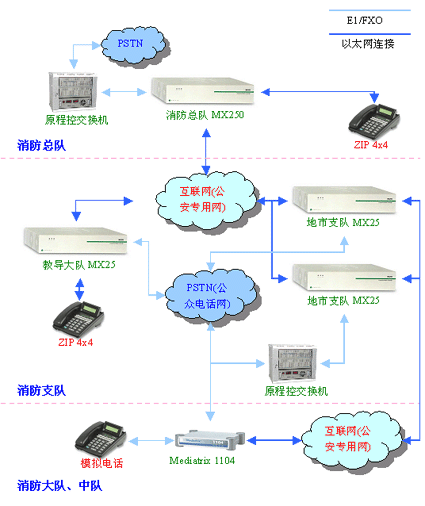 整個(gè)系統(tǒng)主要由Zultys MX250交換機(jī)、ZIP 4x4話機(jī)、ZIP 4x5話機(jī)構(gòu)成。MX250交換機(jī)擁有傳統(tǒng)電話交換機(jī)(PBX/PABX)的全部功能,可以真正把消防通信的數(shù)據(jù)網(wǎng)絡(luò)和電話網(wǎng)絡(luò)融為一體,實(shí)現(xiàn)基于IP的語音通訊。