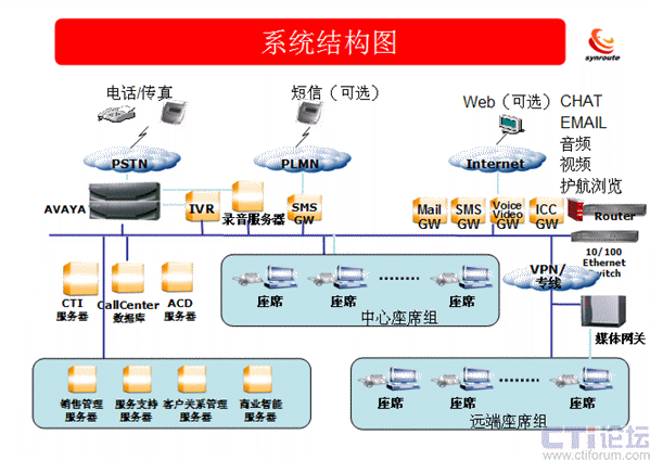 基于AVAYA S8720 交換機(jī),部署PBX、CTI服務(wù)器、Hi-Link核心控制框架、CTI Server、IVR交互式語音應(yīng)答、TTS、智能傳真系統(tǒng)、座席錄音管理、報表統(tǒng)計分析、呼叫中心監(jiān)控管理、系統(tǒng)配置管理、業(yè)務(wù)軟件等。