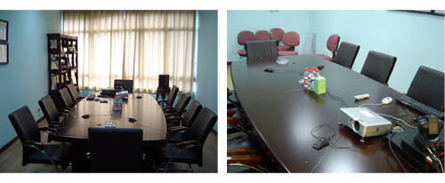 這是在一間典型的會(huì)議室中使用audec多媒體語音引擎做視頻會(huì)議回音消除的測(cè)試。會(huì)議室是一個(gè)5M*3M*3M大小的空間,3面墻是水泥墻,沒有裝飾,屋頂是不帶孔的光滑吊頂,另外一面是玻璃,地板是實(shí)木復(fù)合地板,所以整個(gè)會(huì)議會(huì)議室內(nèi)的回聲反射比較強(qiáng)烈,并且我們還在會(huì)議室內(nèi)安置了分別指向不方向的四個(gè)高靈敏度介面麥克風(fēng)。