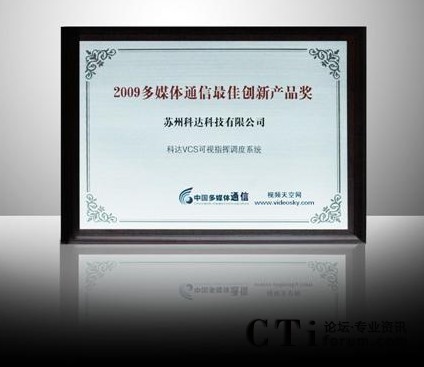 CTI論壇(ctiforum)3月29日消息(記者 袁青):近日,在《中國多媒體通信》雜志及視頻天空網(wǎng)強勢啟動的“2009年度中國多媒體通信行業(yè)大獎”評選活動中,科達(dá)VCS可視指揮調(diào)度系統(tǒng)以其產(chǎn)品的專業(yè)性、直觀性、準(zhǔn)確性及有效性榮獲2009中國多媒體通信行業(yè)“創(chuàng)新產(chǎn)品獎”。