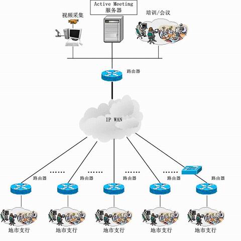 針對南京興業(yè)銀行的網(wǎng)絡和營業(yè)網(wǎng)點的分布情況,網(wǎng)動科技結合Active Meeting系統(tǒng)的特點,推薦了“網(wǎng)內(nèi)架Server,20個營業(yè)網(wǎng)點同步互動,后期冗余擴充”的方案,采用這種解決方案的優(yōu)點非常明顯: