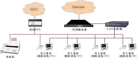 某中小企業(yè),無(wú)分支機(jī)構(gòu),現(xiàn)時(shí)有一個(gè)由傳統(tǒng)PBX構(gòu)建的電話系統(tǒng)和一個(gè)以太局域網(wǎng),兩者相互獨(dú)立,局域網(wǎng)通過一臺(tái)代理服務(wù)器用以太網(wǎng)或ADSL方式接入Internet。企業(yè)的語(yǔ)音通信由電話系統(tǒng)實(shí)現(xiàn);員工的日常工作需要使用計(jì)算機(jī)以及多種局域網(wǎng)和Internet服務(wù)。