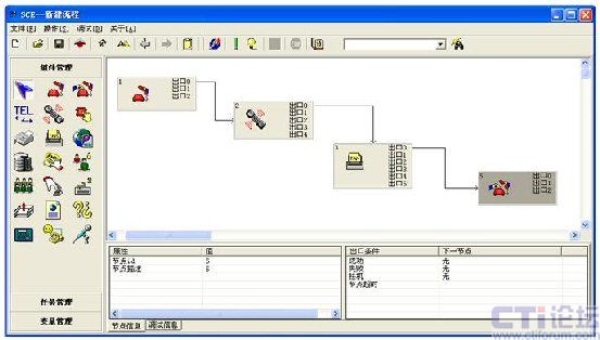 簽入、簽出、置閑、置忙、應(yīng)答、掛機(jī)、保持/取回、咨詢/取消咨詢、兩路切換、轉(zhuǎn)接、三方會(huì)議、轉(zhuǎn)技能組、外呼等;豐富的業(yè)務(wù)系統(tǒng)功能包括:工單管理、知識庫、客戶管理、質(zhì)檢管理、外撥管理、業(yè)務(wù)統(tǒng)計(jì)報(bào)表、公告板、郵件管理、系統(tǒng)管理、前臺(tái)業(yè)務(wù)(坐席)功能、班長功能、數(shù)據(jù)同步、全程錄音、業(yè)務(wù)處理等,這些功能不作詳細(xì)介紹。IVR流程也是采用非常先進(jìn)的圖形化流程編輯器,通過簡單的拖、拉圖標(biāo)方式即可實(shí)現(xiàn)對IVR流程的定制: