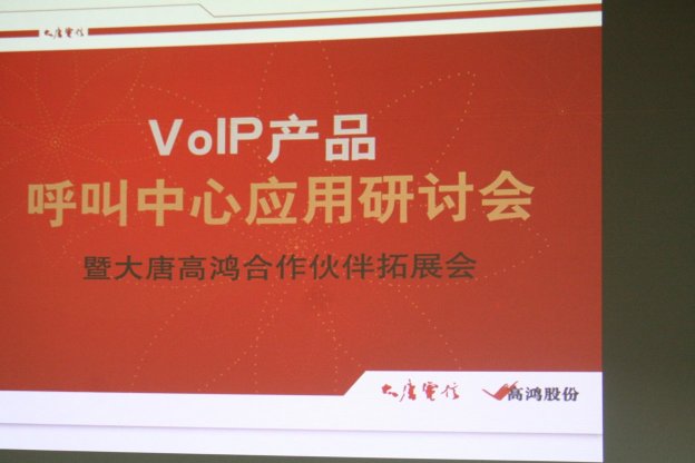 2006年9月8日,由中國(guó)VoIP業(yè)界的引領(lǐng)者大唐高鴻數(shù)據(jù)網(wǎng)絡(luò)技術(shù)股份有限公司(股票簡(jiǎn)稱:高鴻股份;股票代碼:000851)主辦的大唐高鴻VoIP產(chǎn)品呼叫中心應(yīng)用研討會(huì)在北京大唐電信集團(tuán)主樓隆重舉行,此次會(huì)議由CTI論壇協(xié)辦。這是會(huì)議是大唐高鴻攜其VoIP產(chǎn)品進(jìn)軍呼叫中心領(lǐng)域的里程碑。參加會(huì)議的代表來(lái)自虛擬運(yùn)營(yíng)商、VoIP公司、呼叫中心公司,企業(yè)行業(yè)客戶以及知名媒體共120余人,大唐高鴻還向會(huì)議代表介紹了其VoIP產(chǎn)品與呼叫中心廠商的合作計(jì)劃,預(yù)示著大唐高鴻正式向全國(guó)展開(kāi)VoIP產(chǎn)品在呼叫中心行業(yè)中的應(yīng)用的市場(chǎng)攻勢(shì)。