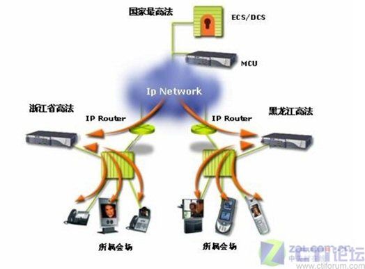 浙江省高等法院的應(yīng)用只是一個(gè)縮影,據(jù)了解,在全國法院系統(tǒng)在最高人民法院的示范作用下,各省級(jí)高等法院已經(jīng)紛紛應(yīng)用RADVISION視頻會(huì)議系統(tǒng),全面構(gòu)造省級(jí)法院到地(市)級(jí)法院的二級(jí)檢察院視頻會(huì)議網(wǎng)絡(luò)。目前全國已經(jīng)有22個(gè)省成功建造了省級(jí)法院RADVISION MCU視頻會(huì)議交互平臺(tái),組成了由24臺(tái)RADVISION MCU實(shí)現(xiàn)的最高法院-22個(gè)省級(jí)法院-地(市)法院的三級(jí)視頻會(huì)議網(wǎng)絡(luò)。RADVISION建設(shè)的視頻會(huì)議系統(tǒng),既可以實(shí)現(xiàn)每個(gè)省單獨(dú)同時(shí)或分時(shí)靈活組建省—地(市)兩級(jí)視頻會(huì)議,也可以召開最高法院—22個(gè)省級(jí)法院—地(市)法院的3級(jí)視頻會(huì)議,并實(shí)現(xiàn)了最高法院對(duì)地(市)法院視頻會(huì)議終端的直接控制和管理。