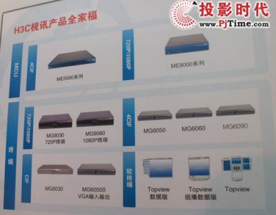 H3C杭州華三通信技術(shù)有限公司提供全系列視訊產(chǎn)品,包括MCU多點(diǎn)控制單元、硬件終端、軟件終端、覆蓋CIF、4CIF、720P、1080P各種清晰度滿足不同場(chǎng)合和不同用戶需求。MCU多點(diǎn)控制單元除了上述的ME8000高清系列產(chǎn)品外,還有4CIF級(jí)的ME5000系列。硬件終端產(chǎn)品除了全高清的MG9060外,還有720P終端MG9030、4CIF分辨率終端MG6050/MG6060/MG6090、CIF級(jí)終端MG6030和MG6050S;軟件終端包括Topview、Topview數(shù)據(jù)版本、Topview組播數(shù)據(jù)版。