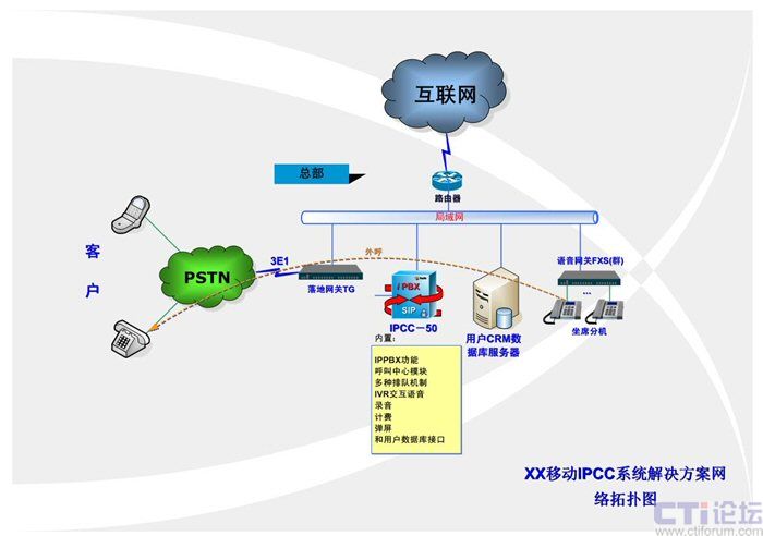 隨著社會(huì)的進(jìn)步和發(fā)展,各企業(yè)和公司越來(lái)越重視將現(xiàn)代科技和營(yíng)銷相結(jié)合,華東某省移動(dòng)公司,為了快速高效地拓展自己的業(yè)務(wù),決定借助網(wǎng)絡(luò)和通訊的發(fā)展建立新的營(yíng)銷平臺(tái),通過(guò)嚴(yán)格的考察和篩選,選擇攜手Polylink集團(tuán)打造新型的IP呼叫中心平臺(tái)。 4.方案設(shè)計(jì)