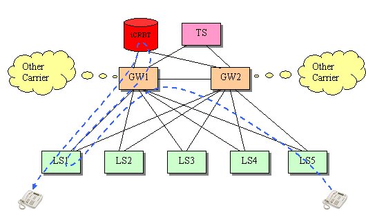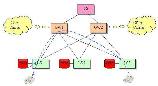 圖7 每個(gè)端局交換機(jī)配置一套iCRBT系統(tǒng)(無(wú)迂回)