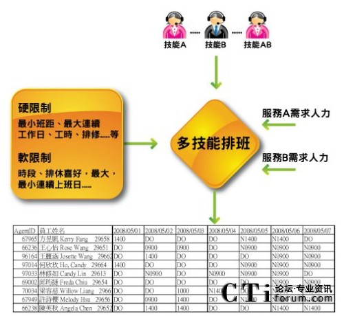 在實(shí)施人資優(yōu)化軟件之后,呼叫中心即可開(kāi)始對(duì)各服務(wù)人力作"量"與"質(zhì)"的管理,確定資源做最佳運(yùn)用,如下圖所示: