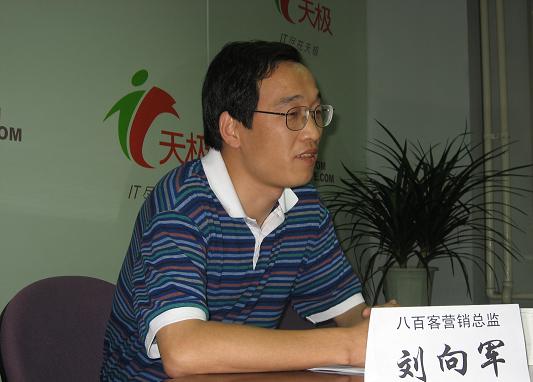 劉向軍:一個公司的名稱一定有它的含義。當(dāng)時創(chuàng)業(yè)的時候來講,這個名字意思很多。其中很重要的就是一個理念。當(dāng)時對未來市場的評估看不太清楚,但是對一個提供在線托管服務(wù)廠商,單位廠商認(rèn)為至少要到八百個客戶。所以八百客具有八百個客戶的意思。當(dāng)然還有其他的意思,F(xiàn)在八百客經(jīng)過這么兩年的時間,無論從產(chǎn)品技術(shù),還是從客戶的現(xiàn)在擁有量,還是在市場影響層面,已經(jīng)站住腳跟。當(dāng)然一個行業(yè)的發(fā)展,這種趨勢越來越快。