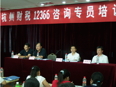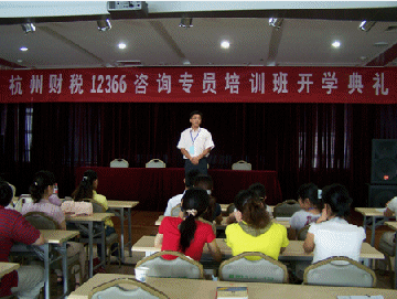圖為杭州財(cái)稅12366咨詢(xún)專(zhuān)員培訓(xùn)班開(kāi)學(xué)典禮上杭州財(cái)稅局人事處領(lǐng)導(dǎo)講話