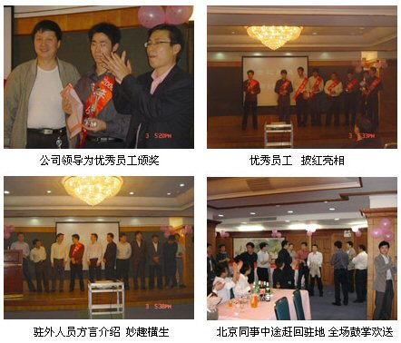8位2006年度的優(yōu)秀員工,是世紀(jì)網(wǎng)通經(jīng)過全體員工無記名投票選出16位候選人,又16進(jìn)12,12進(jìn)8,幾次PK后產(chǎn)生的,他們中,既有業(yè)務(wù)第一線風(fēng)餐露宿的渠道經(jīng)理,也有連續(xù)工作數(shù)天不下火線的研發(fā)工程師,既有生產(chǎn)一線任勞任怨的同事,也有不辭繁累為客戶耐心服務(wù)的技術(shù)支持工程師、、、、、、,他們?cè)诒姸嗝琅負(fù)硐碌呐t亮相、令人感慨萬千的獲獎(jiǎng)評(píng)語宣讀、發(fā)自肺腑激動(dòng)人心的獲獎(jiǎng)感言、手中亮晶晶的獎(jiǎng)杯等等,感染了每個(gè)在場(chǎng)的人。李總將一臺(tái)新研發(fā)的假O單口網(wǎng)關(guān)送給這個(gè)項(xiàng)目的主管也是優(yōu)秀員工的工程師時(shí),當(dāng)工程師說:“抱著這臺(tái)產(chǎn)品,就像抱著自己的親兒子一樣、、、、、、”全場(chǎng)無不動(dòng)容。