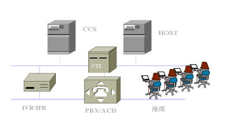 智能化網(wǎng)絡(luò)(Intelligent Network)、排隊(duì)機(jī)(ACD)、計(jì)算機(jī)語音集成(CTI)、自動(dòng)語音/傳真響應(yīng)設(shè)備(IVR/IFR)、業(yè)務(wù)系統(tǒng)主機(jī)HOST、座席(Agent)、信息板(Wall