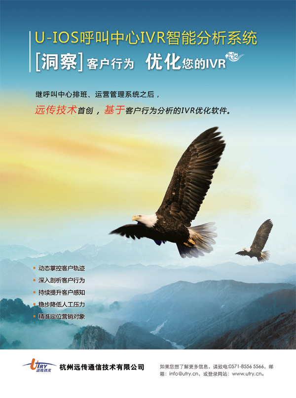 杭州遠(yuǎn)傳通信技術(shù)有限公司是國(guó)家高新技術(shù)企業(yè)、雙軟企業(yè),具備軟件成熟度CMMI 3級(jí)資質(zhì),是專(zhuān)業(yè)的客戶服務(wù)管理軟件及咨詢服務(wù)提供商。公司以“追求卓越”和“客戶滿意”為目標(biāo),致力于呼叫中心、營(yíng)業(yè)廳等客戶服務(wù)渠道的管理提升和信息化。憑借著公司細(xì)致周到的服務(wù),扎實(shí)穩(wěn)健的技術(shù)實(shí)力,公司在電信、金融、保險(xiǎn)、旅游、航空、電力、互聯(lián)網(wǎng)及電子商務(wù)等行業(yè)領(lǐng)域擁有著眾多的成功案例,獲得了客戶的廣泛贊譽(yù)。