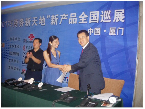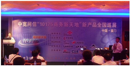 2007年6月27日,中寬網(wǎng)信”101756商務(wù)新天地”新產(chǎn)品全國(guó)巡展廈門(mén)站在廈門(mén)喜來(lái)登酒店勝利召開(kāi)。會(huì)議的主旨是向中小企業(yè)及呼叫中心用戶(hù)推出個(gè)性化的通信增值服務(wù)方案,提高企業(yè)競(jìng)爭(zhēng)力;同時(shí)為投資者提供投資小回報(bào)快的投資項(xiàng)目。此次會(huì)議得到了中國(guó)聯(lián)通的大力支持,廈門(mén)聯(lián)通數(shù)據(jù)部副總監(jiān)林長(zhǎng)春先生表示中國(guó)聯(lián)通十分看好中國(guó)電信融合市場(chǎng)的巨大產(chǎn)業(yè)機(jī)會(huì),有信心與中寬網(wǎng)信真誠(chéng)合作,利用雙方各自平臺(tái)優(yōu)勢(shì),深度合作,資源互補(bǔ),共同參與激烈的電信市場(chǎng)競(jìng)爭(zhēng)。
