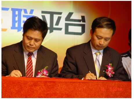 中寬網(wǎng)信科技(北京)有限公司副總裁余輝和阿里軟件現(xiàn)場簽約