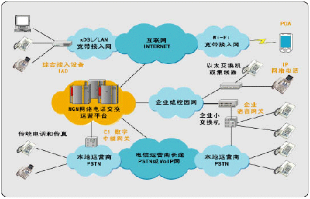 中寬網(wǎng)信在美國率先開發(fā)成功的新一代網(wǎng)絡(luò)電話交換系統(tǒng)是基于最新的VoIP分組語音協(xié)議和世界領(lǐng)先的軟交換技術(shù),以用戶局域網(wǎng)、寬帶接入網(wǎng)、互聯(lián)網(wǎng)和傳統(tǒng)PSTN電話網(wǎng)絡(luò)融合組網(wǎng)的一種高質(zhì)量數(shù)字寬帶通信平臺(tái)。它代表了未來電信網(wǎng)絡(luò)和業(yè)務(wù)的發(fā)展趨勢;支持和推進(jìn)下一代網(wǎng)絡(luò)(NGN)的平滑演進(jìn)。該系統(tǒng)不僅可以提供傳統(tǒng)電話的各種業(yè)務(wù),還可以提供語音與互聯(lián)網(wǎng)的各種業(yè)務(wù),包括點(diǎn)擊撥號、語音郵件、視頻通信和特色服務(wù)如及時(shí)消息、號碼移動(dòng)、一卡通等各種新型的增值業(yè)務(wù)。