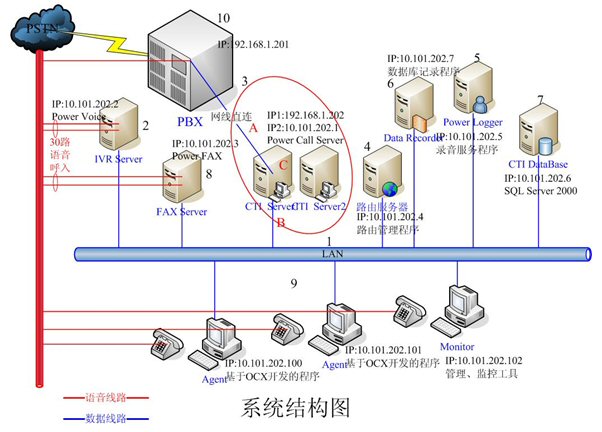 - IVR Server和FAX Server采用高品質(zhì)的工控機,配置和軟件環(huán)境基本一樣。每臺機器均有30路語音接入,分別裝有一套Power