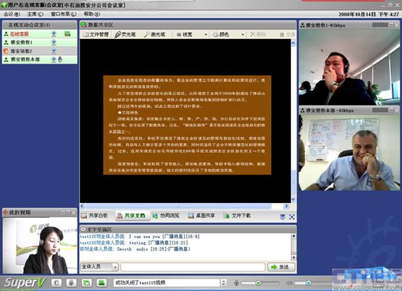 CTI論壇(ctiforum)05月19日消息: 自08年攜手視維Super-V視頻會議以來,中石油雅安分公司銷售部的日常工作會議高效及時地開展,尤其是在5.12四川大地震后,工作不但沒有中斷,而且足不出戶就可以給上級領(lǐng)導(dǎo)匯報(bào)工作,與同事交流營銷心得。而在以前,只能通過電話或者郵件,甚至長途跋涉聚集到一個地方舉行會議,既浪費(fèi)時間又增加營銷成本。這是繼中國重汽、新加坡協(xié)美集團(tuán)等跨國集團(tuán)公司倡導(dǎo)信息時代新營銷主義,實(shí)現(xiàn)高效運(yùn)營的又一典型案例應(yīng)用。