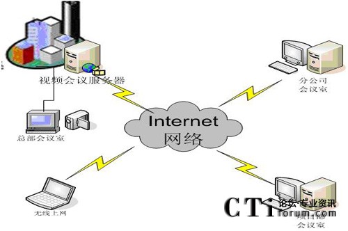 視維根據(jù)互聯(lián)網(wǎng)的網(wǎng)絡(luò)現(xiàn)狀和IT硬件資源制定了一套可行的平民化的低帶寬下的高清視頻會(huì)議解決方案。以企業(yè)總部為主會(huì)場(chǎng),其他地區(qū)的分公司、各營(yíng)銷(xiāo)網(wǎng)點(diǎn)和各移動(dòng)多媒體終端作為分會(huì)場(chǎng),其網(wǎng)絡(luò)拓?fù)鋱D如下: