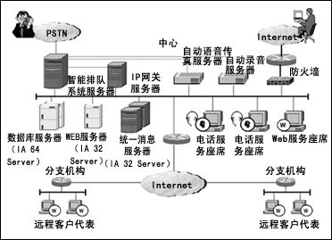 消息處理中心服務器協(xié)調(diào)客戶服務中心內(nèi)部各種服務資源的工作,使客戶來自電話網(wǎng)的訪問和來自互聯(lián)網(wǎng)的訪問能夠按照優(yōu)先級次序處理;