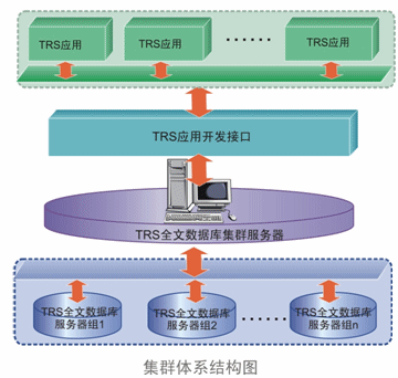 TRS全文數(shù)據(jù)集群服務(wù)器,是架構(gòu)在多個物理TRS全文數(shù)據(jù)庫服務(wù)器之上的分布式管理系統(tǒng),它支持數(shù)據(jù)分布及負載均衡兩種方式,并支持兩種方式的組合運用,滿足用戶海量數(shù)據(jù)和高并發(fā)環(huán)境下的分布式檢索、檢索性能和可靠性要求。
