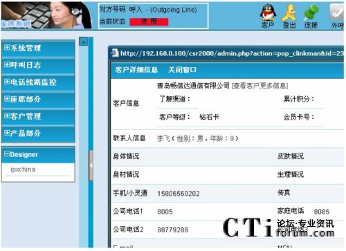 作為呼叫中心的核心功能,來電彈屏功能在客戶和服務代表之間建立了溝通的橋梁。當電話接入客服代表電話振鈴的同時,電腦屏幕會彈出客戶的相關(guān)資料。如果是新客戶,則彈出空白頁面,客服代表可以說歡迎的同時錄入客戶資料,以備客戶下次來電時查詢。當客戶在網(wǎng)上選購產(chǎn)品時,有問題可以隨時打電話溝通,來時的同時,座席電腦上彈出客戶已經(jīng)填寫的資料,座席對客戶的資料一目了然,提高了工作效率。來電彈屏的頁面可以根據(jù)用記要求定制。