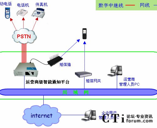 運(yùn)營商管理人員通過局域網(wǎng)或者internet網(wǎng)絡(luò)訪問智能通知平臺(tái),管理和維護(hù)企業(yè)用戶的帳戶信息,并為企業(yè)用戶提供個(gè)性化功能配置。