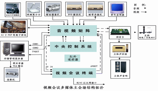 根據貴單位的分布特點,視頻會議會議系統(tǒng)建立7個會場,其中主會場一個,設在大樓的會議室,分會場6個,設在各下屬單位會議室。傳輸信道采用系統(tǒng)內部的寬帶IP綜合網絡。