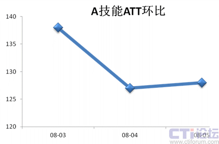 3月份開始采用新上崗員工和隊列溢出等策略接聽處理A技能話務(wù),隨著業(yè)務(wù)熟悉度的提高,ATT從138秒下降到127秒,環(huán)比有8%的下降幅度,說明加強(qiáng)培訓(xùn)操作,可以有效降低ATT。