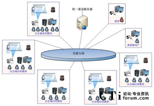 湖南省勞教局是司法廳管理的從事管理、教育、改造勞動(dòng)教養(yǎng)人員的行政機(jī)構(gòu),也是省勞動(dòng)教養(yǎng)管理委員會(huì)的常設(shè)辦事機(jī)構(gòu)。其下屬管理有20多個(gè)下屬機(jī)構(gòu),分布于湖南省各個(gè)地市縣,以前進(jìn)行全局會(huì)議時(shí),所有的人員都需要到長(zhǎng)沙市來(lái)進(jìn)行開(kāi)會(huì),管理起來(lái)很不方便,同時(shí)差旅成本也比較高,同時(shí)局里經(jīng)常需要對(duì)下面的工作人員進(jìn)行業(yè)務(wù)方面的培訓(xùn),F(xiàn)客戶需要在他們的勞教專(zhuān)網(wǎng)上部署一套視頻會(huì)議系統(tǒng)來(lái)進(jìn)行管理和培訓(xùn)。