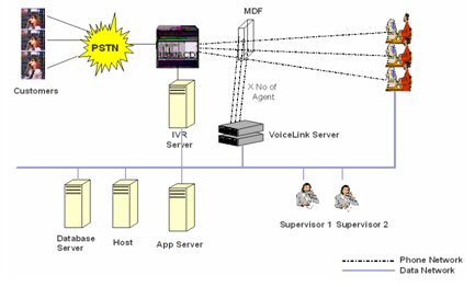 在Voicelink 電話網(wǎng)絡(luò)錄音方案下,語音可以通過每條的電話線獲得并能連接到Voicelink服務(wù)器上。語音將在Voicelink服務(wù)器里被處理,該服務(wù)器內(nèi)裝有語音卡。通過電話“摘機(jī)”和“掛機(jī)”的動作來啟動錄音和結(jié)束錄音。在TCP/IP的網(wǎng)絡(luò)下,主管可以調(diào)聽錄音并通過登陸到服務(wù)器上進(jìn)行用戶管理。