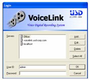 - 簡易且方便的管理:在現(xiàn)有的TCP/IP網(wǎng)絡(luò)的條件下,管理員或主管可以在任何地方遠(yuǎn)程登陸到Voicelink服務(wù)器上,來進(jìn)行錄音回放和管理。
