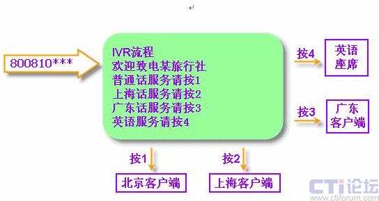 當(dāng)客戶撥打電話進(jìn)入SA800系統(tǒng)平臺的呼叫中心。通過IVR導(dǎo)航,可隨意打到各地的客戶端,再通過客戶端進(jìn)行更加細(xì)致的分類。并且,每個客戶端都可以互相轉(zhuǎn)接。IVR流程可以無限下拉菜單。