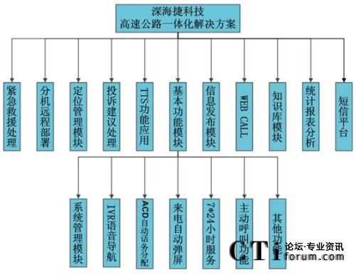 深海捷科技針對高速公路呼叫中心的需求特點,并結(jié)合長遠發(fā)展需求,通過統(tǒng)一的服務號碼接入,實現(xiàn)除呼叫中心基礎功能外的緊急救援處理模塊、分機遠程部署、定位管理模塊、投訴建議處理流程、TTS應用模塊、實時信息發(fā)布模塊、WEB