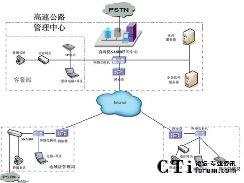 3)統(tǒng)一組網(wǎng):高速公路的地域特點,要求省級、地域級的呼叫中心具有靈活的組網(wǎng)方式和統(tǒng)一的信令。例如:No.7信令組網(wǎng)。