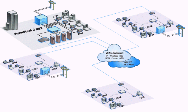 內(nèi)部兩網(wǎng)合一:管理、維護(hù)、升級方便靈活NBX網(wǎng)絡(luò)呼叫中心的核心是3Com公司的NBX網(wǎng)絡(luò)電話交換機(jī),它具有PBX的功能,支持多種外線接入方式,呼入的語音信號轉(zhuǎn)換為數(shù)據(jù)包,在局域網(wǎng)內(nèi)部傳輸,實(shí)現(xiàn)局域網(wǎng)內(nèi)部語音、數(shù)據(jù)的統(tǒng)一。