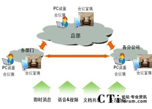 同時支持語音、視頻、文本通信及文檔共享、桌面共享、白板操作、網頁共享等協用手段