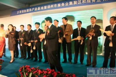 4月21日,江蘇信息服務(wù)產(chǎn)業(yè)基地暨揚(yáng)州市服務(wù)業(yè)集聚區(qū)和服務(wù)業(yè)項(xiàng)目推介洽談會(huì)在江蘇信息服務(wù)產(chǎn)業(yè)基地(揚(yáng)州)隆重召開,省信息產(chǎn)業(yè)廳副廳長龔懷進(jìn)、揚(yáng)州市委常委、常務(wù)副市長張京霞為省信息安全技術(shù)中心揭牌,中國網(wǎng)通集團(tuán)公司總工程師滕勇,神州數(shù)碼高級(jí)副總裁陳勇,上海萬得信息股份董事長陸風(fēng)等數(shù)十位集團(tuán)公司老總現(xiàn)場祝賀,同時(shí)IBM、AVAYA、優(yōu)勝資訊、神州數(shù)碼等60多家企業(yè)現(xiàn)場簽定了投資合作協(xié)議,而華潤通信、中國電信、酒店無憂、漢世紀(jì)等10家企業(yè)則從廣陵區(qū)委書記孔令俊手中接過了入駐金鑰匙,成為首批入駐江蘇信息服務(wù)產(chǎn)業(yè)基地的企業(yè),至此江蘇信息服務(wù)產(chǎn)業(yè)基地迎來首發(fā)項(xiàng)目招商的“開門紅”,江蘇信息服務(wù)產(chǎn)業(yè)基地也因此被業(yè)界冠以中國首家專業(yè)定位信息呼叫和數(shù)據(jù)處理產(chǎn)業(yè)的“中國聲谷”的美譽(yù)。 “江蘇信息服務(wù)產(chǎn)業(yè)基地(揚(yáng)州)”位于廣陵新城內(nèi),為省信息產(chǎn)業(yè)廳與揚(yáng)州市政府聯(lián)手打造的中國首家專業(yè)定位于呼叫信息和數(shù)據(jù)處理產(chǎn)業(yè)的省級(jí)信息服務(wù)業(yè)基地,占地2.52平方公里,總投資50億元,處于揚(yáng)州ECBD核心區(qū)域,交通便捷,區(qū)位優(yōu)勢(shì)獨(dú)特,生態(tài)環(huán)境優(yōu)美;匕凑铡爱a(chǎn)業(yè)社區(qū)”的標(biāo)準(zhǔn)和“商務(wù)公園”的理念規(guī)劃建設(shè),重點(diǎn)發(fā)展信息服務(wù)產(chǎn)業(yè)及具有揚(yáng)州特色的城市信息化應(yīng)用軟件和嵌入式軟件產(chǎn)業(yè),立足長三角、面向全國、服務(wù)世界,逐步發(fā)展成為全國乃至世界呼叫中心產(chǎn)業(yè)最佳實(shí)踐基地、全國生產(chǎn)性服務(wù)業(yè)的標(biāo)桿示范基地及呼叫中心人才培訓(xùn)與派遣基地。