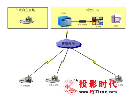 傳輸網(wǎng)絡(luò)采用4M專線,整個(gè)系統(tǒng)由控制中心、市政府主會(huì)場(chǎng)和18個(gè)區(qū)縣分會(huì)場(chǎng)組成,在控制中心配置MCU、網(wǎng)管和電視墻多畫面顯示單元,通過(guò)網(wǎng)管對(duì)系統(tǒng)實(shí)行設(shè)備的統(tǒng)一管理和會(huì)議資源的統(tǒng)一調(diào)度,控制中心配置18路電視墻集中顯示單元,通過(guò)電視墻,可實(shí)時(shí)監(jiān)看18個(gè)區(qū)縣分會(huì)場(chǎng)情況。在市政府主會(huì)場(chǎng)和18個(gè)區(qū)縣分會(huì)場(chǎng),各會(huì)場(chǎng)配置1套高清晰視頻會(huì)議終端,各會(huì)場(chǎng)終端4M專線接入控制中心,實(shí)現(xiàn)全市電子政府的視頻會(huì)議系統(tǒng)。系統(tǒng)建設(shè)完成后,可實(shí)現(xiàn)導(dǎo)演控制、主席控制、點(diǎn)名發(fā)言、會(huì)場(chǎng)輪巡、攝像機(jī)遠(yuǎn)控、電視墻、多畫面、多方混音等視頻會(huì)議系統(tǒng)功能。