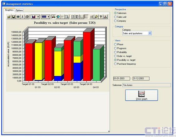 使企業(yè)用戶可以獲得與銷售相關(guān)的主要信息的圖形化視圖。通過該方案能夠簡(jiǎn)化機(jī)會(huì)和管道管理,由此可獲得銷售和營(yíng)銷成果的即時(shí)概況,同時(shí)可以提供銷售和營(yíng)銷經(jīng)理與其團(tuán)隊(duì)之間的有效協(xié)作。企業(yè)可通過系統(tǒng)建立和監(jiān)視銷售單位中每個(gè)成員的銷售目標(biāo),并可以快速方便地瀏覽或修改該目標(biāo),能夠快捷地獲得季度或年度目標(biāo)的即時(shí)概況,并且使用直觀的圖形化圖表顯示這些關(guān)鍵數(shù)據(jù)和數(shù)據(jù)趨勢(shì)。管理層還可以對(duì)銷售歷史的任意時(shí)間段中的銷售人員相關(guān)的收入和支出、盈利和虧損數(shù)據(jù)進(jìn)行分析和比較。