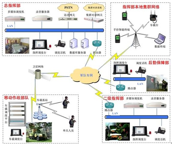 以指揮、控制、通信、計算機(jī)、情報等為代表的自動化通信指揮系統(tǒng)是現(xiàn)代軍事指揮系統(tǒng)的神經(jīng)中樞。而確保神經(jīng)中樞融合和通暢,多媒體指揮調(diào)度系統(tǒng)正是實施貫徹這一步驟的關(guān)鍵。