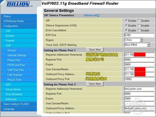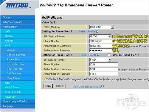 把申請得到的相關(guān)數(shù)據(jù)填入BiPAC 6404VGP中,在路由器后面接上電話就可以享受完全免費或超低價格的電話服務了。同一個SIP服務器下面的用戶互相撥打電話、收發(fā)傳真是免費的。