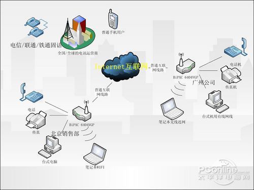 BiPAC 6404VGP其實就是一個VoIP語音網(wǎng)關(guān),VoIP就是一種把語音信號轉(zhuǎn)換成在網(wǎng)絡上傳輸?shù)臄?shù)字信號的技術(shù),它的應用已經(jīng)非常成熟,我們經(jīng)常使用的QQ語音聊天功能也就是VoIP的一種表現(xiàn)形式。在所有大型跨國企業(yè)里我們幾乎都能看到VoIP技術(shù)的身影,這是因為電信運營商的長途電話費一般都不便宜,而我們企業(yè)的網(wǎng)絡使用費一般又是包月的,通過無限包月的網(wǎng)絡打免費的國際國內(nèi)長途電話不就是占電信的便宜嘛?
