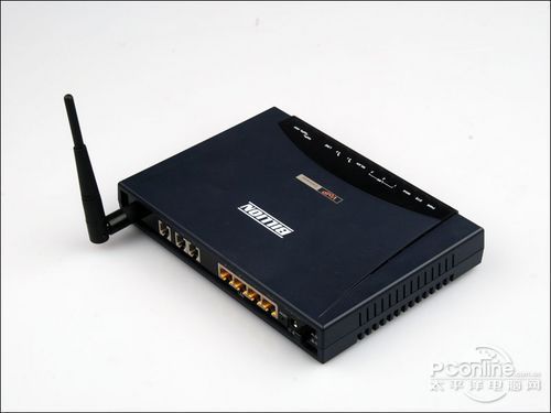 BiPAC 6404VGP外觀看上去與一臺普通的無線路由器沒多大區(qū)別,由于是面向企業(yè)級用戶,所以外型設計比較沉穩(wěn)。整機深藍色,在無線路由器的正上方鮮明的標注出它同時還是一臺VoIP語音網(wǎng)關(guān)。