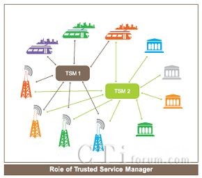 可信服務(wù)管理 (TSM)為復(fù)雜的、有眾多參與者的NFC生態(tài)系統(tǒng)帶來(lái)的穩(wěn)定性及可預(yù)見(jiàn)性。其核心作用是分配和管理各個(gè)服務(wù)提供商的應(yīng)用。它是移動(dòng)運(yùn)營(yíng)商、銀行和公交公司的一個(gè)共同的聯(lián)絡(luò)點(diǎn)。對(duì)移動(dòng)NFC應(yīng)用進(jìn)行安全下載和生命周期管。可信服務(wù)管理必須贏得參與各方的信任才能完成這一任務(wù)。