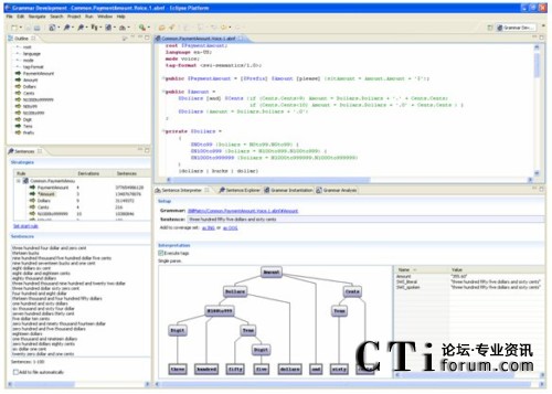 這里強調(diào)的Eclipse插件,除了本身作為優(yōu)秀工具,還提供了附加于Eclipse工作臺內(nèi)的順暢互操作性:你可以一邊看著對應呼叫者輸入的對話流程,一邊檢查和完成語音識別語法;你也可以一邊構建連接后臺的Web服務代碼,一邊通過簡單地拖放來調(diào)整應用邏輯。開發(fā)者首次擁有了對所有應用方面的同時控制,無須在不同IDE之間進行切換,或者在選擇單一環(huán)境時在特性上的折衷。